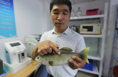 在實驗室里,青島海星儀器有限公司創(chuàng)始人張躍鋒正在擺弄著一個塑膠做的魚,魚體上還插著一根藍(lán)色小針。可別小瞧了這根藍(lán)色小針,這就是張躍鋒與伙伴們花了大半年的時間研發(fā)出的新技術(shù)。張躍鋒向記者介紹,這個小玩意叫做魚類追蹤器,將這個東西放在魚身上,通過衛(wèi)星等就可以做到數(shù)據(jù)傳輸,能夠?qū)崟r地監(jiān)控到魚的現(xiàn)狀。對于研究魚類的遷徙、生活習(xí)性、養(yǎng)殖等都有非常大的幫助。這個產(chǎn)品目前已經(jīng)賣給了清華等多所大學(xué)和知名的海洋研究所。