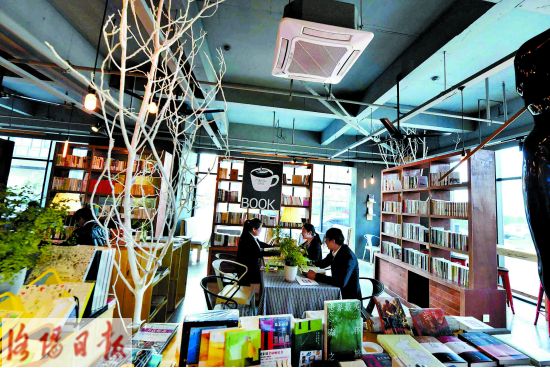 昨日,在高新區北航科技園新型眾創空間——云集圖書館,園區工作人員正一邊品嘗咖啡,一邊看書交流。